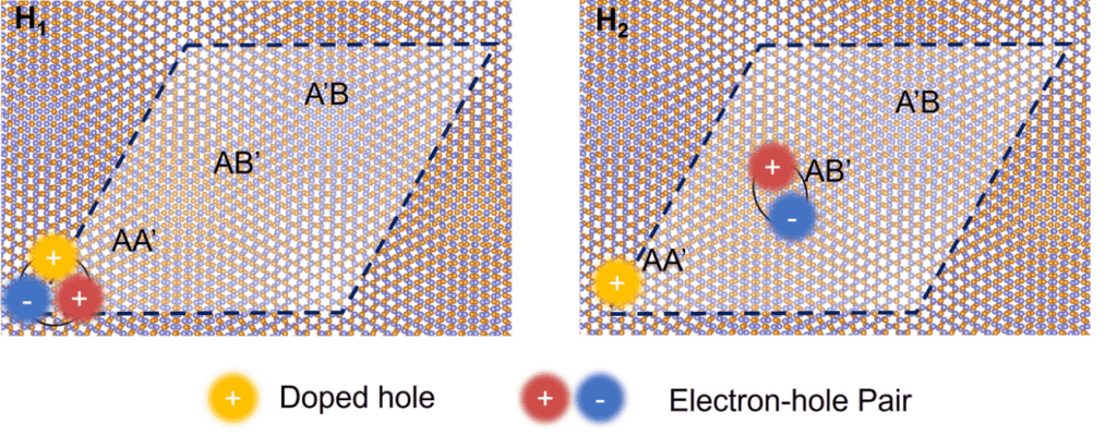 TEM and Raman analyses indicate that lattice reconstruction is crucial, with the novel trion configuration emerging only in a superlattice that exhibits gradual atomic variations.