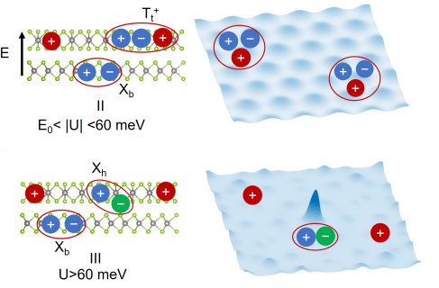 The system shows evidence of hybrid exciton formation and charge localization, both of which are attributed to the strong quasi-crystalline potential.